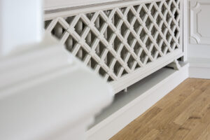 Inne i den största av paradvåningar på Storgatan 37 är det dock lättheten och det flödande ljuset, som slår en. Detta mycket tack vare de sexdelade, spröjsade fönstren, typiska för 1920-talsklassicismen.