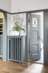 Till de bevarade detaljerna i lägenheten hör fint arbetade bröstpaneler, elementskydd och andra snickerier.